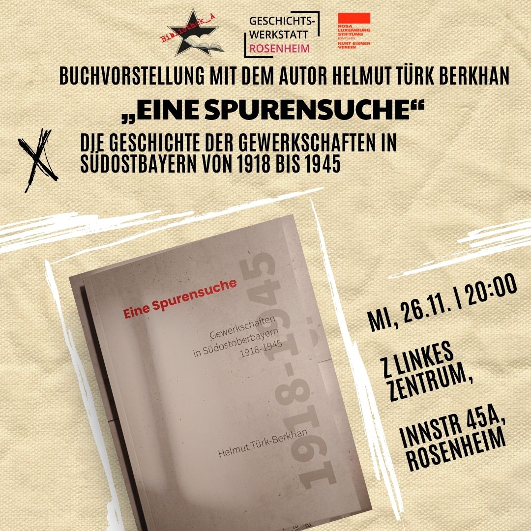 Die Lesung/Diskussion wird von der Bibliothek_A in Kooperation mit der Geschichtswerkstatt Rosenheim und dem Kurt Eisner Verein organisiert, Die Veranstaltung (Nachholtermin für die ursprünglich im Juni geplante Lesung) beginnt um 20:00 Uhr, der Eintritt ist frei, es gilt ein Einlassvorbehalt. Weitere Infos: https://bibliotheka.rosenheim.social/